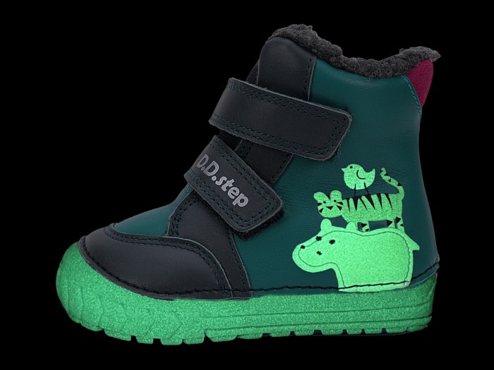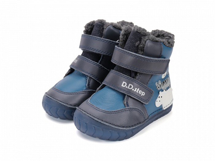 D.D.Step W029-52287 Fiú bélelt bőrcipő vízilovas mintával - kék