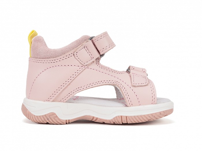 Rózsaszínű bőrből készült, tépőzáras lány szandál.